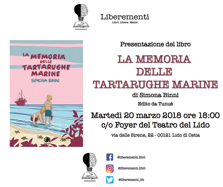 Tornano le presentazioni di “Liberementi” con “La memoria delle tartarughe marine” di Simona Binni, edito da Tunuè.