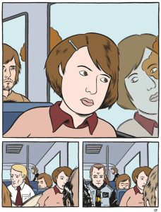 Le tavole sono regolari e i colori spesso proposti in tonalità sgargianti stridono con la piattezza e il grigiore dentro cui la protagonista sguazza e in cui sembra pienamente a suo agio. Le mancherebbe solo un gatto, direte voi a questo punto! E invece, no. Il gatto c’è, si chiama Mr. Morritz, e spesso sembra essere l’unico essere vivente con cui Amy ha piacere di interagire.