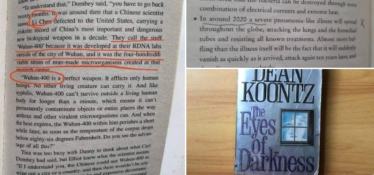 “Uno scienziato cinese di nome Li Chen fuggì negli Stati Uniti, portando una copia del dischetto dell’arma biologica cinese più importante e pericolosa del decennio. La chiamano Wuhan-400 perché è stata sviluppata nei loro laboratori di RDNA vicino alla città di Wuhan ed era il quattrocentesimo ceppo vitale di microorganismi creato presso quel centro”.