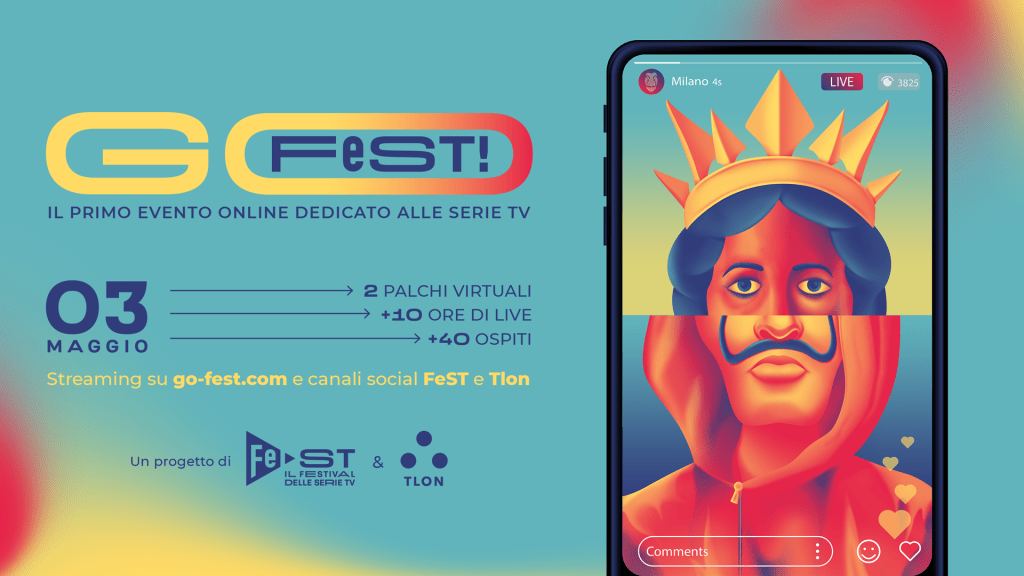 Primo evento interamente online dedicato alla serie tv, GO FeST! si svilupperà su palchi diversi con due programmi paralleli. Da un lato ci sarà il virtual stage, in cui gli ospiti della giornata si alterneranno in diretta streaming per affrontare numerose tematiche trasversali legate al mondo della serialità. Il virtual stage vivrà su un sito dedicato a GO FeST!, ma anche sui canali Youtube e Facebook di Tlon e FeST. Dall’altro lato, si accenderanno anche i Live IG stage – che si potranno seguire sui canali Instagram di FeST, Tlon e su quelli Instagram ufficiali dei singoli ospiti – in cui influencer, giornalisti, attori e cantanti si attiveranno con dirette.