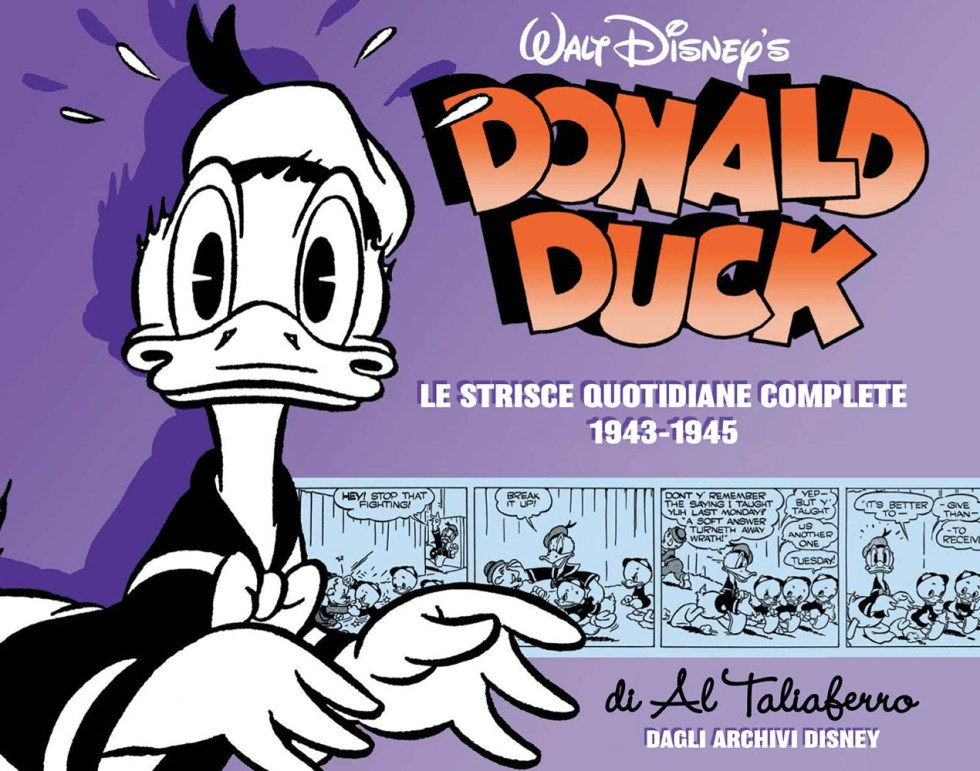 Arriva poi Le strisce quotidiane complete di Al Taliaferro 1943-1945, il terzo volume che raccoglie le strisce quotidiane di Donald Duck incentrato questa volta sugli anni della Seconda Guerra Mondiale, con Paperino e i Nipotini costretti a sperimentare un regime di vita inedito che ispira un serie di gag esilaranti, scritte da Bob Karp e magicamente disegnate da Al Taliaferro.