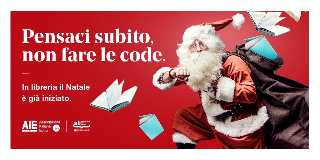 In libreria il Natale è già iniziato: è partita ieri la campagna dell’Associazione Italiana Editori (AIE) e librai (ALI Confcommercio) per invitare i lettori ad andare in libreria il prima possibile, senza attendere le code di Natale.