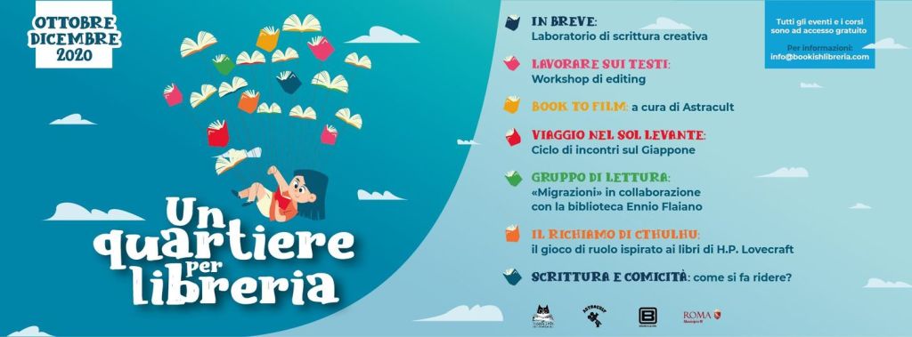 Con la stessa attitudine viene in questi giorni presentato il progetto “Un quartiere per libreria” insieme a Brancaleone e Astracult, in cui ora lo spazio della libreria ha la possibilità di “invadere” pacificamente e festosamente gli spazi del territorio e i vostri schermi, a maggior ragione con le limitazioni imposte per rispondere all’emergenza sanitaria dovuta al Covid-19.