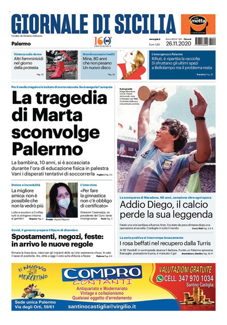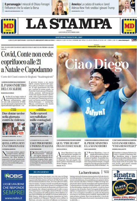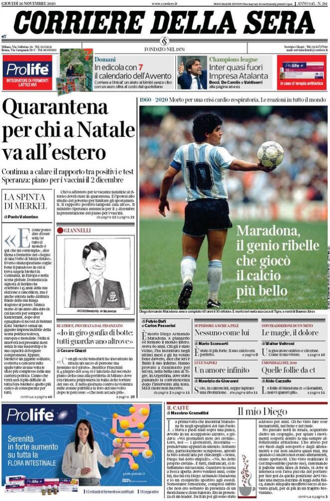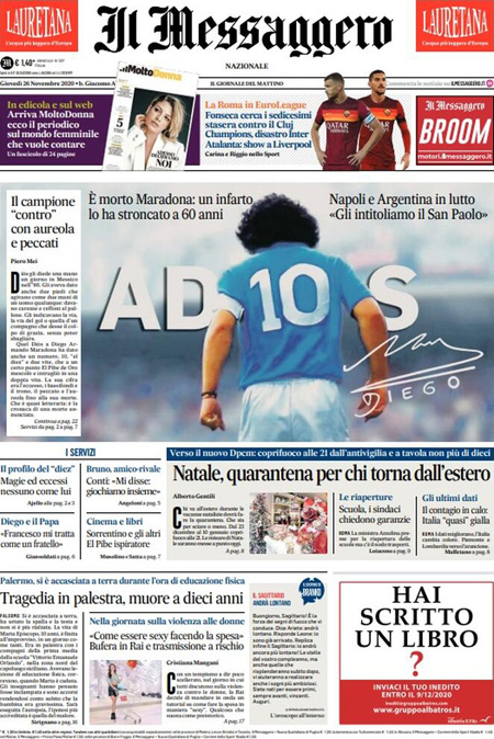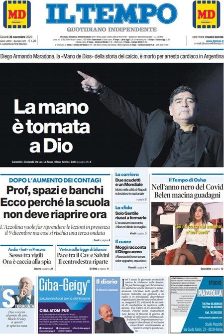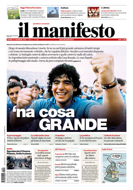 Sportivi, nazionali, locali, stranieri. Tutte le principali prime pagine del mondo aprono con un pensiero a Diego. In un giorno in cui è difficile trovare le parole lasciamo che siano i titoli dei giornali a farlo per noi.