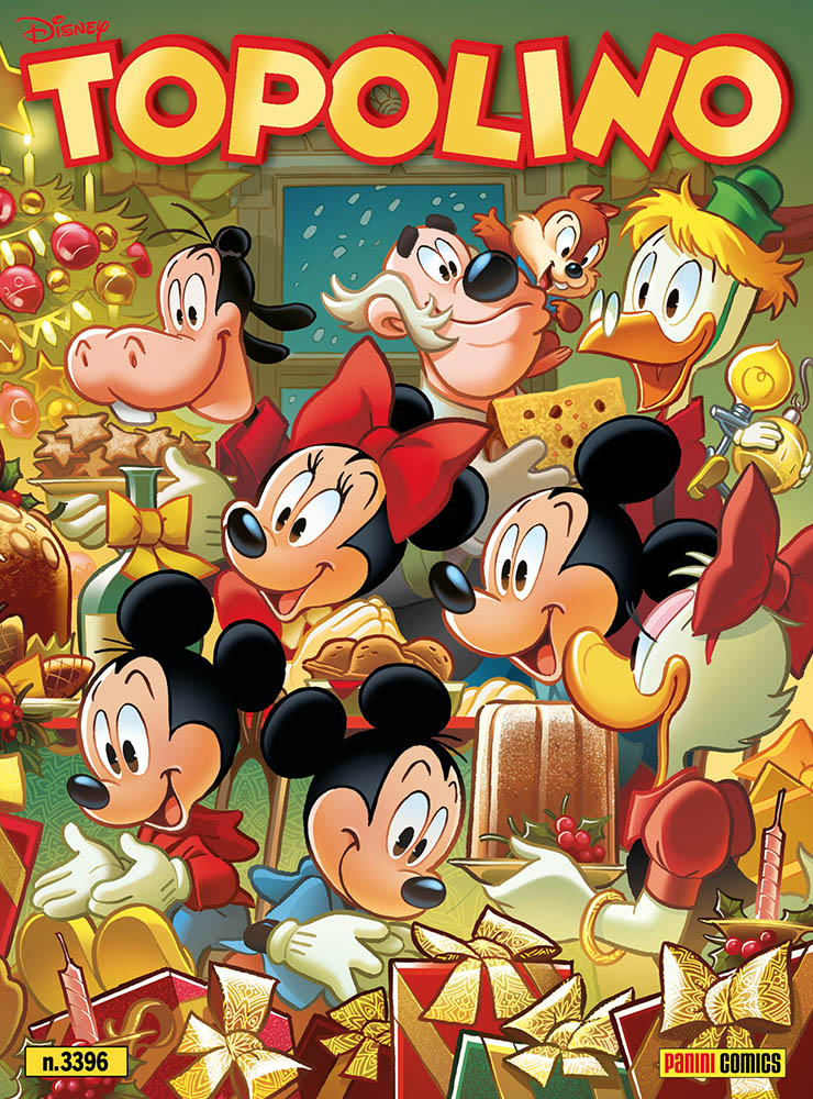Topolino 3396, disponibile da mercoledì 23 dicembre, sarà come da tradizione un numero “100% Christmas”, con tutte le storie ad ambientazione natalizia, e avrà una cover “sfavillante”, che unita a quella del numero 3395, creerà un’unica, suggestiva immagine che porterà il lettore nell’atmosfera magica del Natale nella grande famiglia di Topi e Paperi. Inoltre, con un espediente narrativo curioso, tre delle storie del numero saranno collegate tra loro, mostrando cosa accade a Paperopoli in tre differenti contesti, nello stesso momento. Newton Pitagorico e l’aspirazione natalizia (di Marco Nucci e Stefano Intini), Paperinik e il torrone Papergè (di Marco Gervasio e Nico Picone) e Paperino e il Natale da saltare (di Blasco Pisapia), pur se leggibili autonomamente, avranno infatti all’interno rimandi l’una all’altra e saranno coerenti con le trame delle altre avventure. Un esperimento unico, tutto da gustare sotto l’albero. L’altra storia di grande impatto sul numero 3396 sarà la seconda e ultima parte di Topolino e le piccole verità del Natale, con le Feste di Topolinia minacciate dall’ipnotico e malvagio Mister Vertigo.