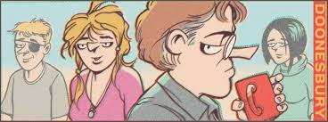Doonesbury in questo caso indica una parte per il tutto. La parte è il personaggio Mike Doonesbury, il tutto è la più longeva striscia politica di fumetti che da anni segue la politica americana. Inizialmente narra le vicende di un gruppo di amici durante gli anni del college. Il protagonista è Mike Doonesbury che oltre a dare il nome alla serie è anche l’alter ego dell’autore e di chiare tendenze liberal. La storia dei personaggi iniziata alla fine degli anni sessanta evolve col tempo per cui li vediamo crescere, vivere, invecchiare e in alcuni casi morire proprio come una una soap opera americana, capace però di parlare ai cittadini di politica meglio di molti addetti ai lavori. Se amate i fumetti, la politica in generale (quella americana in particolare) questa è la vostra serie a fumetti del cuore!