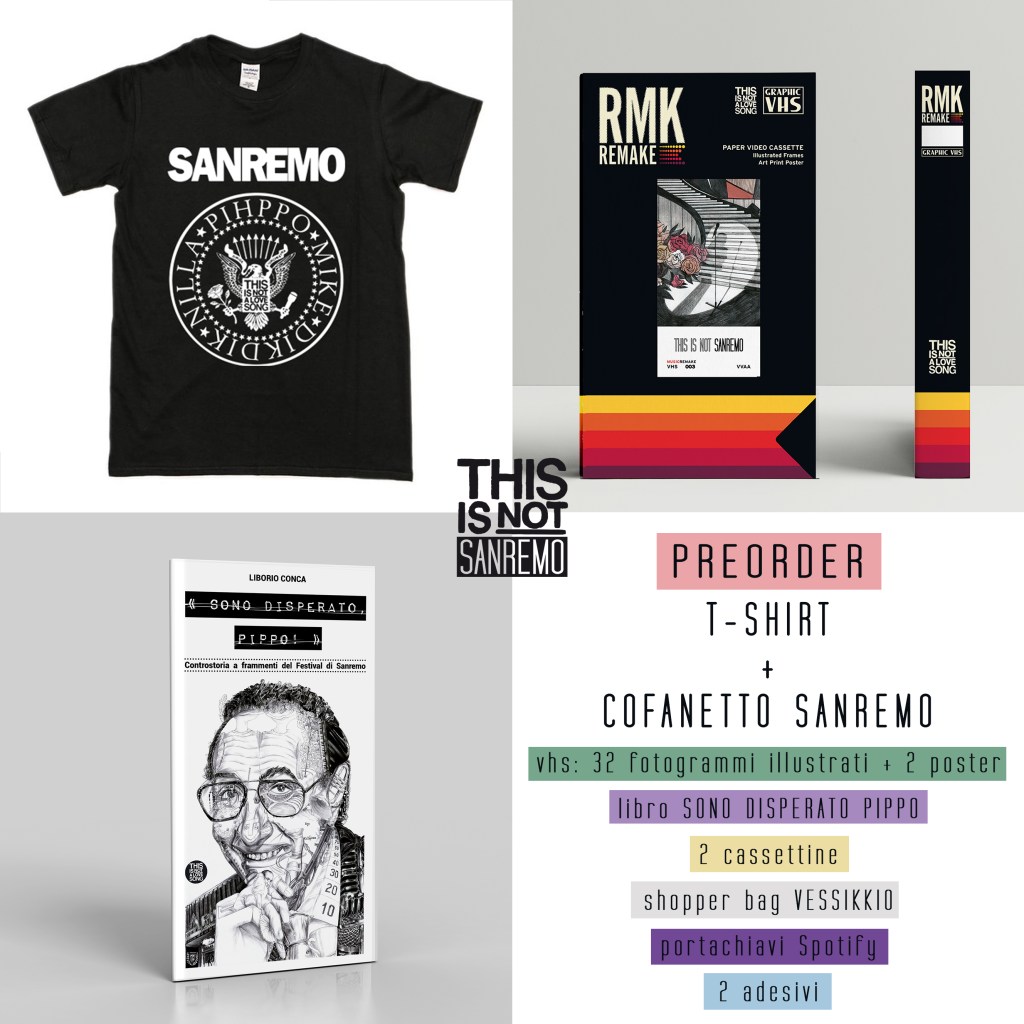 Questa volta gli amici di TINALS – This is not a love song l’hanno fatta grossa e da oggi è in vendita sul loro sito la MusicRemake – vhs 003 – (This Is Not) SANREMO, un rifacimento grafico a cura di vari artisti, liberamente ispirato alle esibizioni storiche durante le varie edizioni del Festival di Sanremo.