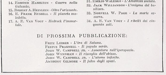 Nell’ultima pagina, a margine del riepilogo dei numeri già pubblicati, vi era l’elenco dei titoli di prossima pubblicazione.