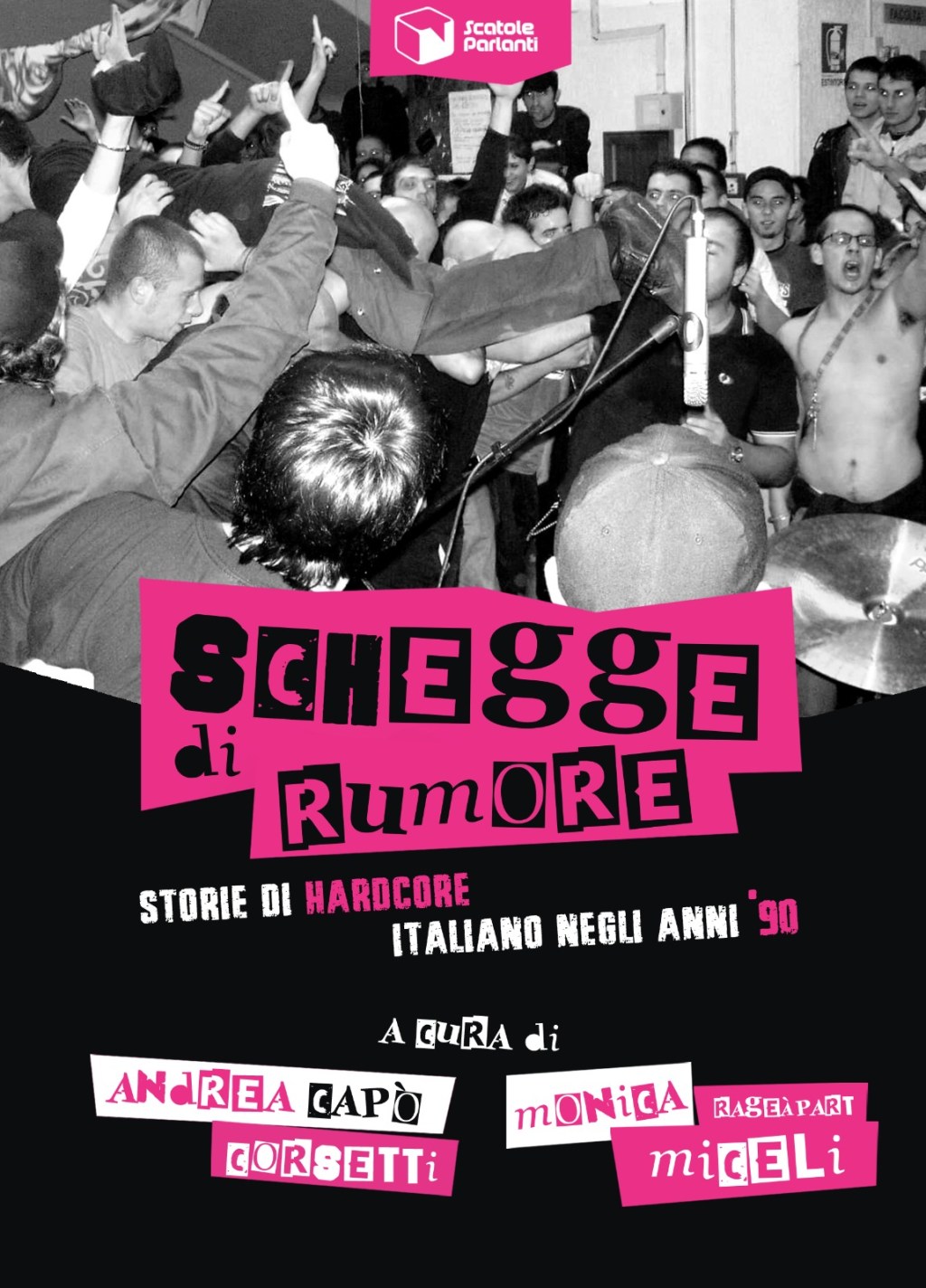In questo, apparente, vuoto narrativo si inserisce il bel libro Schegge di Rumore, edito da Scatole Parlanti e curato da Andrea “Capò” Corsetti e Monica” Rageàpart” Miceli. Il libro già dal sottotitolo spiega bene il suo campo d’indagine: storie di hardcore italiano negli anni ’90. Ed è proprio il decennio che ha traghettato il nostro paese al nuovo millennio che viene raccontato attraverso una lunga intervista ad alcuni dei maggiori esponenti della scena musicale hardcore di quegli anni.