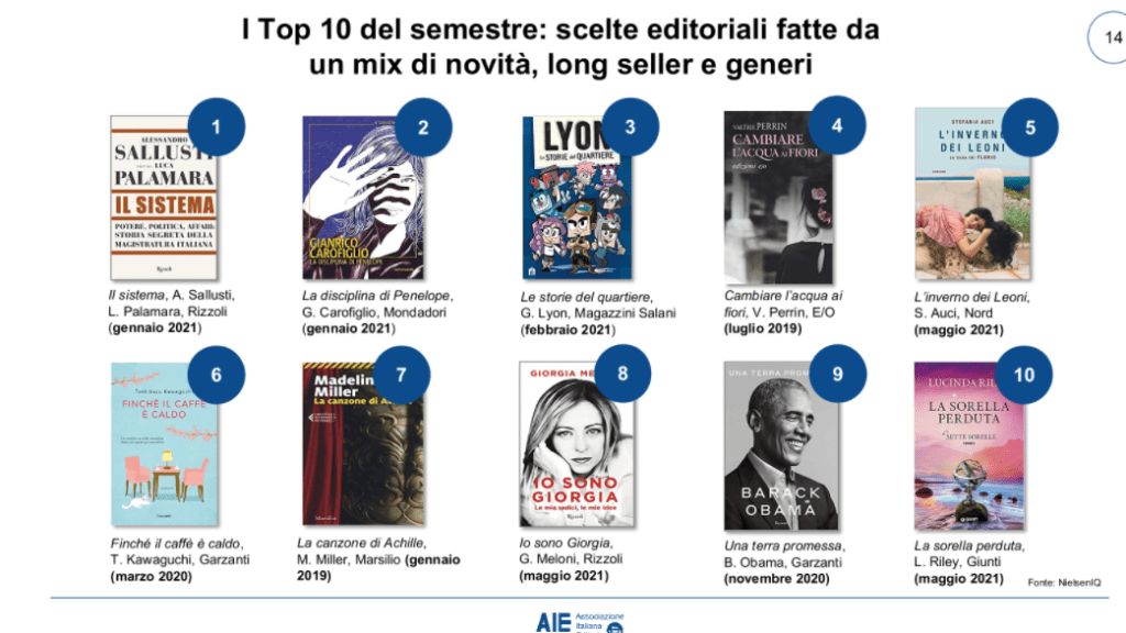 La top ten dei libri più venduti nel semestre (vedi allegato), fatta di un mix di novità, long seller e generi molto diversi tra loro, testimonia la vitalità e l’importanza delle scelte editoriali nella selezione dei titoli da pubblicare e promuovere.