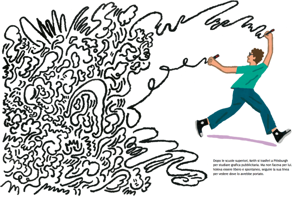 Da quando aveva quattro anni e disegnava con suo padre al tavolo della cucina,fino al giorno in cui morì a trentun anni, Keith rimase libero e spontaneo, seguendo la sua linea ovunque lo portasse.
