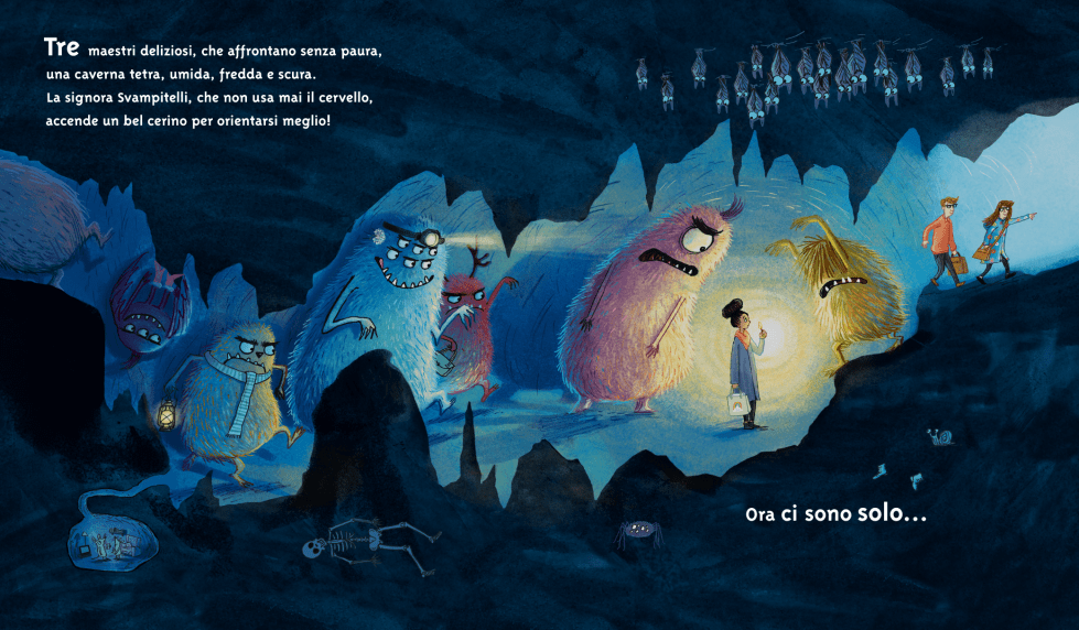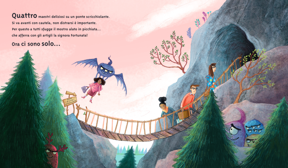 Così, da 10, diventano 9 e poi 8, 7, 6, 5, 4, 3, 2, 1… Ma c’è un limite a tutto! L’ultima rimasta, la maestra Guerrina, quella che «insegna alla materna, niente la ferma», non si lascia certo mangiare.