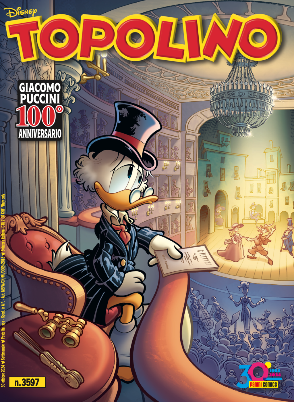 Nessun… dorma! In occasione dei 100 anni dalla scomparsa del Maestro dell’opera italiana, Panini Comics si prepara a celebrare il grande compositore toscano. Topolino 3597 – disponibile in edicola e su Panini.it a partire da mercoledì 30 ottobre – dà il via ai festeggiamenti in onore di Giacomo Puccini con l’imperdibile storia inedita Zio Paperone e l’opera inattesa – scritta da Alessandro Sisti per i disegni di Simona Capovilla – e con una suggestiva cover disegnata da Paolo Mottura.